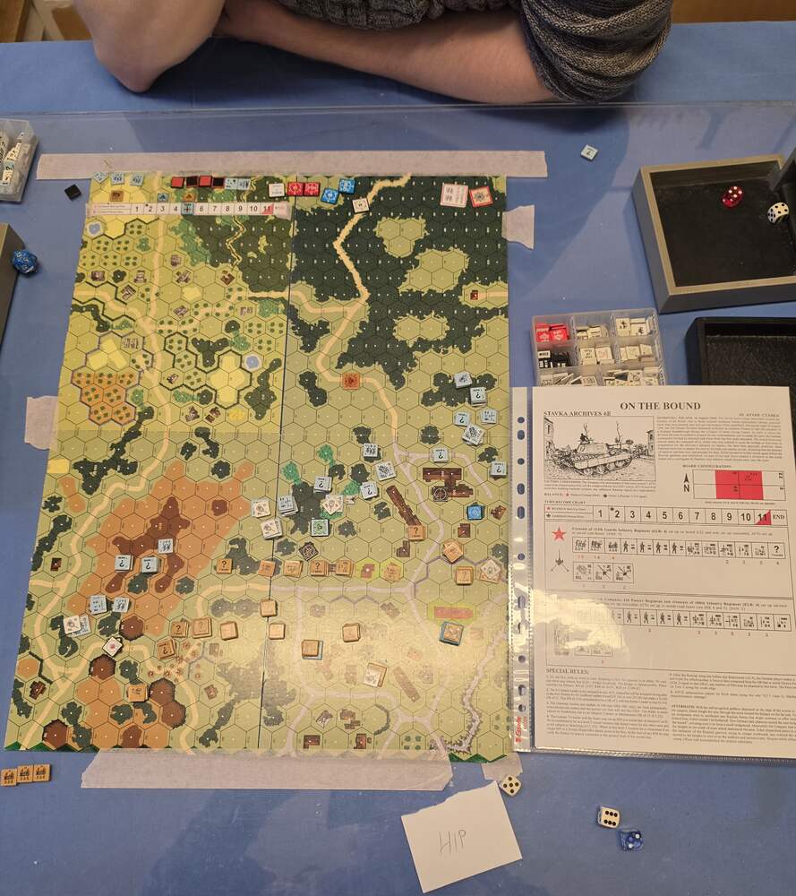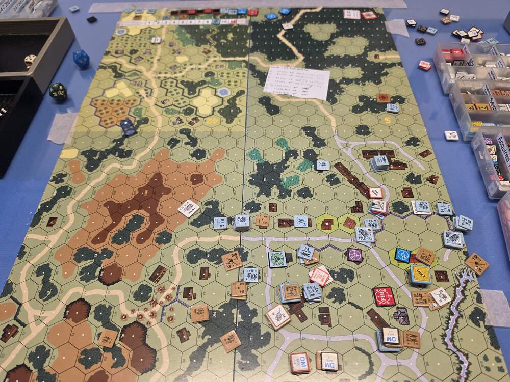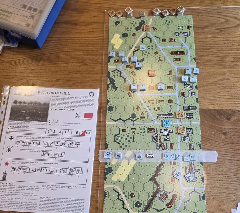 Spelade som Ryss mot Svante, med hårdare balanser än förut: ta bort 3x 447 squads och 6 min faktorer, nu vann Tysken. Men det var på håret, Tyska sniper sköt ned ryska sniper två steg, bröt två squads, tyska eldkastare sköt 7 gånger i scenariot X:ade den aldrig. Sista tyska rusnibgen, AT Gun behöver bara pinna tysk elit squad som CX:ar fram, boxar AT gun, tyska squad går in i CC, sista pin ryska squad behövde slå DR 5 eller lägre för att vinna. Upplåst i meele, tysk seger, tågstationen och vattentornet föll till slut, som det gjorde historiskt.