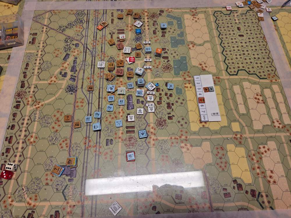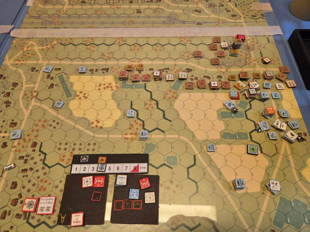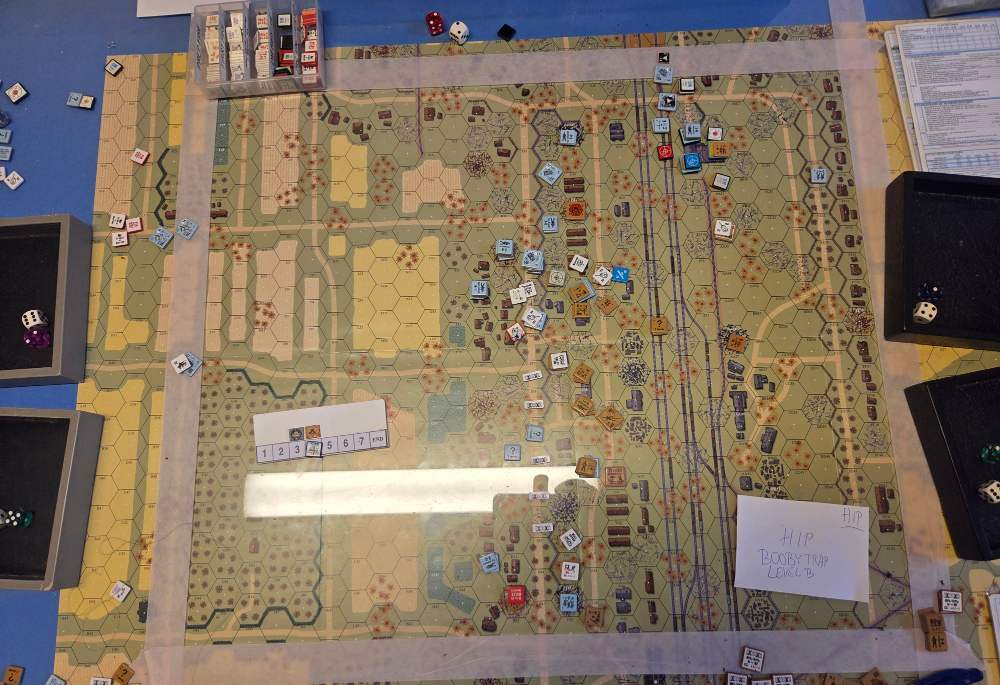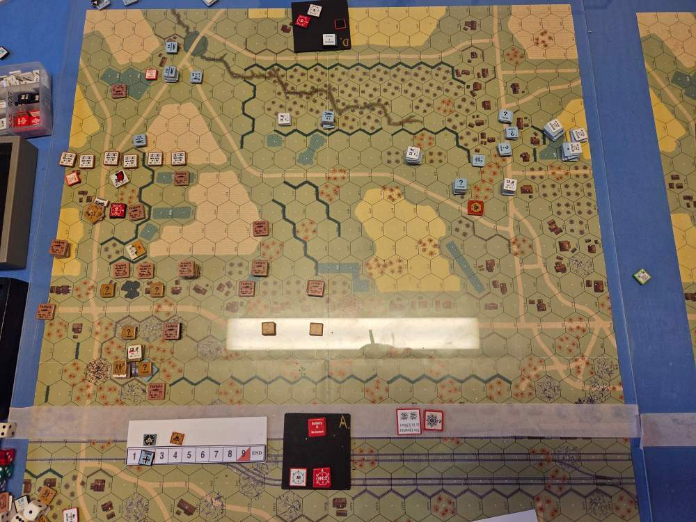 August 16Aug 16 Author comment_38160 SaP1 EXPELLED! Updated version Update the VCs with the following: VICTORY CONDITIONS: Provided the Germans Control all wooden building/rubble hexes within 10 hexes of U67, the Germans win at game end by having more unbroken Infantry VP (A26.211) in/adjacent to building U67 than the Russians. Vehicle crews on-foot are worth 0 VP. Neither AFVs nor Vehicle crews can gain Control of Terrain. Decrease 8.5 Turns to 7.5 Turns. Delete from the German OB: three 4-6-7 squads, an 8-0 Ldr, one of each SW: HMG, MMG, LMG, ATR, Lt MTR, DC. Replace the 8 German “?” counters with an 8-1 Pz Ldr. Replace the SPECIAL RULES: section with the following: 1. See SaP SSR. EC are Moderate with no wind at start. A truck may not enter a new hex without passengers. 2. The Russians receive one module of 70+mm OBA (HE/Smoke) with Plentiful Ammunition (6B/2R), a Leader with the Radio may set up HIP. 3. The Germans receive one module of 100+mm OBA (HE/Smoke) with Plentiful Ammunition (9B/3R), the first draw is automatically a black chit, directed by an Offboard Observer at level 3 in a west-edge hex recorded secretly at setup. 4. After German setup on-/off-board, a single 100+mm OBA attack is resolved. The German player place an AR in any hex of his choice, and is now considered to be in a Pre-Registered hex. Accuracy/Direction/Extent-of-Error is rolled for, no LOS/Battery-Access is required. If a Smoke Fire Mission is chosen, the Smoke is neither flipped nor removed in the German Turn 1 PFPh. If a HE Fire Mission is selected, the FFE:1 is removed, before play begins (i.e., before a Wind Change DR is made). 5. Contrary to B28.9, units never take any type of TC, unless the TC DR may also result in something else other than triggering a Booby Trap attack. 6. When attempting Battery Access for an OBA Module, if the second permanently-removable red chit is drawn and less than two black chits have been permanently removed from the Draw Pile, return that red chit to the Draw Pile instead. Your OBA actions for this battery are done for this Player Turn (i.e., the second red chit can only be removed from the Draw Pile if at least two black chits have been permanently removed from the Draw Pile for that OBA Module). An Original Contact/Maintenance DR of 12 does not cause the breakdown of the Radio. 7. At the end of each of the following four phases: PFPh, MPh, DFPh, and AFPh, each Light MTR’s Area Acquisition counter is removed from play. Each time a Light MTR hits a hex, the player has the option to consider that hit to be a miss instead. Edited August 24Aug 24 by CTABKA Report