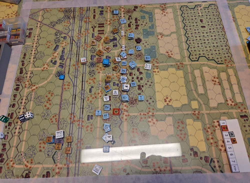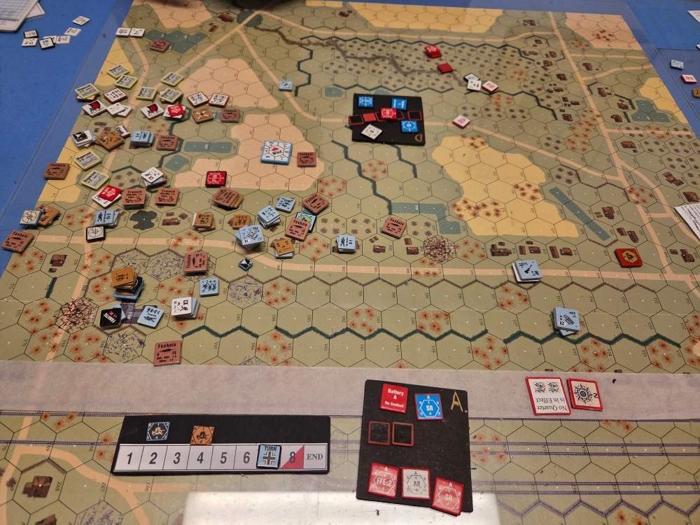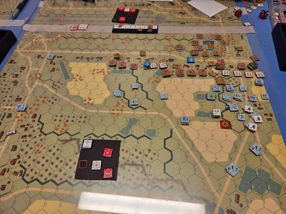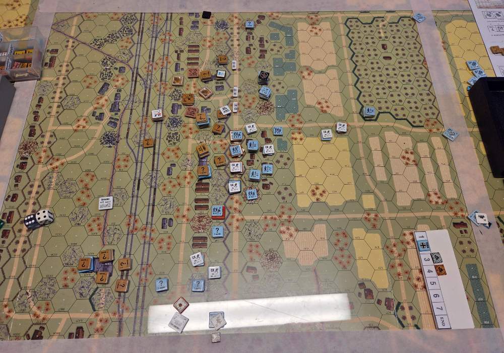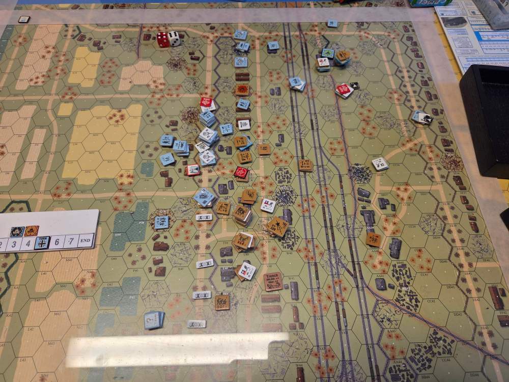 August 16Aug 16 Author comment_38160 SaP1 EXPELLED! Updated version Update the VCs with the following: VICTORY CONDITIONS: Provided the Germans Control all wooden building/rubble hexes within 10 hexes of U67, the Germans win at game end by having more unbroken Infantry VP (A26.211) in/adjacent to building U67 than the Russians. Vehicle crews on-foot are worth 0 VP. Neither AFVs nor Vehicle crews can gain Control of Terrain. Decrease 8.5 Turns to 7.5 Turns. Delete from the German OB: three 4-6-7 squads, an 8-0 Ldr, one of each SW: HMG, MMG, LMG, ATR, Lt MTR, DC. Replace the 8 German “?” counters with an 8-1 Pz Ldr. Replace the SPECIAL RULES: section with the following: 1. See SaP SSR. EC are Moderate with no wind at start. A truck may not enter a new hex without passengers. 2. The Russians receive one module of 70+mm OBA (HE/Smoke) with Plentiful Ammunition (6B/2R), a Leader with the Radio may set up HIP. 3. The Germans receive one module of 100+mm OBA (HE/Smoke) with Plentiful Ammunition (9B/3R), the first draw is automatically a black chit, directed by an Offboard Observer at level 3 in a west-edge hex recorded secretly at setup. 4. After German setup on-/off-board, a single 100+mm OBA attack is resolved. The German player place an AR in any hex of his choice, and is now considered to be in a Pre-Registered hex. Accuracy/Direction/Extent-of-Error is rolled for, no LOS/Battery-Access is required. If a Smoke Fire Mission is chosen, the Smoke is neither flipped nor removed in the German Turn 1 PFPh. If a HE Fire Mission is selected, the FFE:1 is removed, before play begins (i.e., before a Wind Change DR is made). 5. Contrary to B28.9, units never take any type of TC, unless the TC DR may also result in something else other than triggering a Booby Trap attack. 6. When attempting Battery Access for an OBA Module, if the second permanently-removable red chit is drawn and less than two black chits have been permanently removed from the Draw Pile, return that red chit to the Draw Pile instead. Your OBA actions for this battery are done for this Player Turn (i.e., the second red chit can only be removed from the Draw Pile if at least two black chits have been permanently removed from the Draw Pile for that OBA Module). An Original Contact/Maintenance DR of 12 does not cause the breakdown of the Radio. 7. At the end of each of the following four phases: PFPh, MPh, DFPh, and AFPh, each Light MTR’s Area Acquisition counter is removed from play. Each time a Light MTR hits a hex, the player has the option to consider that hit to be a miss instead. Edited August 24Aug 24 by CTABKA Report