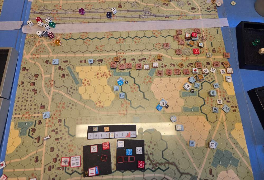 August 25Aug 25 comment_38174 On 8/24/2025 at 6:29 AM, CTABKA said: SaP2 POMERANIAN FURY Updated version Update the VCs with the following: VICTORY CONDITIONS: The Germans win at game end by amassing > 5 VP. Building AA29 is worth 2 VP, buildings U34, U37, U40 are worth 1 VP each if German-Controlled. Each of these four buildings is also worth 1 VP if unoccupied by any Good Order Russian unit. Vehicle crews cannot gain Control of buildings and considered broken at game end. Delete from the German At Start OB, three 4-6-7 squads. Replace the SPECIAL RULES: section with the following: 1. See SaP SSR. EC are Moderate with no wind at start. 2. Prior to setup the Russians may spend < 50 points on the Russian Fortifications/”?” table. 3. All German AFVs have Schuerzen (D11.2) [EXC: Marder III(t)H]. 4. Contrary to B28.9, units never take any type of TC, unless the TC DR may also result in something else other than triggering a Booby Trap attack. 5. At the end of each of the following four phases: PFPh, MPh, DFPh, and AFPh, each Light MTR’s Area Acquisition counter is removed from play. Each time a Light MTR hits a hex, the player has the option to consider that hit to be a miss instead. Riktig hund - ta bort tre 467😄 Report